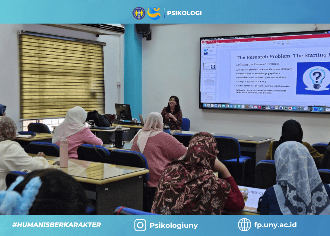 Fakultas Psikologi Universitas Negeri Yogyakarta (FP UNY kembali melaksanakan program Visiting Professor Outbound sebagai bagian dari penguatan internasionalisasi akademik. Pada kegiatan ini, Prof. Yulia Ayriza, Ph.D., dosen Fakultas Psikologi UNY, menjadi narasumber dan pengajar pada mata kuliah Research Methods di Department of Counselor Education and Psychology, Faculty of Educational Studies, Universiti Putra Malaysia (UPM).